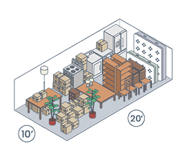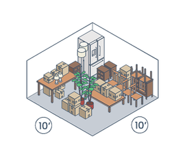 Medium 10x10 units are similar to one side of a garage. Good for household furniture, travel gear, and office furniture.